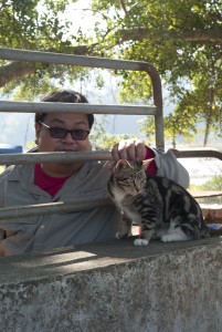 深涌至西沙公路長約 7 公里長,起點深涌要乘渡輪前往,而我和 Joan 約在早上六時半出發,吃過早餐後便開車到出口位置(西沙公路)泊好車,然後搭的士到馬料水碼頭上船。因為我們預留了充分時間(因為船不等人),比船期早一個小時已經抵達碼頭,百無聊賴之下,Joan 在一旁逗街貓玩耍。